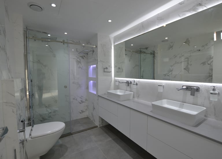 Upgrade your bathroom into a luxurious retreat with our premium renovation services, featuring modern layouts, elegant finishes, and high-end sanitary solutions.