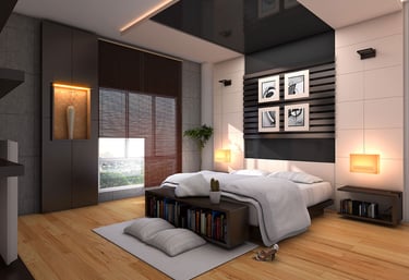 Experience a refined bedroom transformation with custom-made furniture, detailed carpentry, and timeless design elements