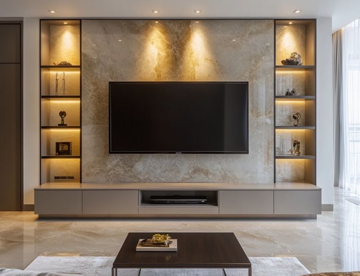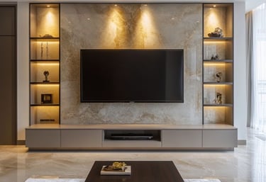 Create stylish, custom-built media units that blend innovation, storage, and design harmony